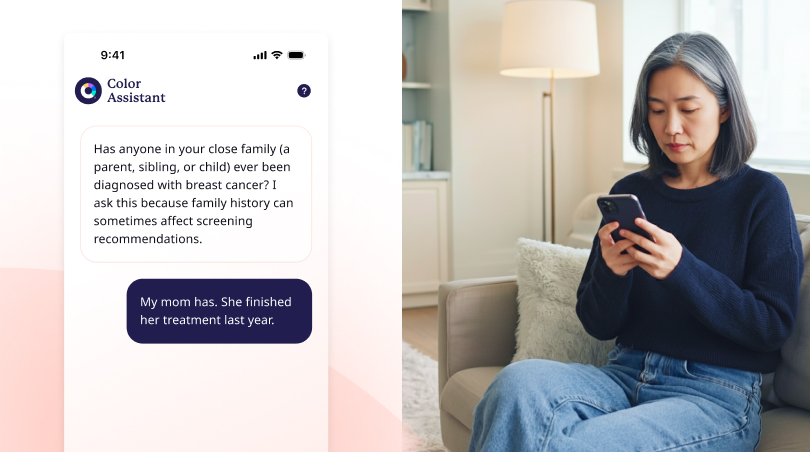 The Color Assistant, an AI Agent, will ask you questions to see if you’re eligible for a mammogram based on national guidelines.