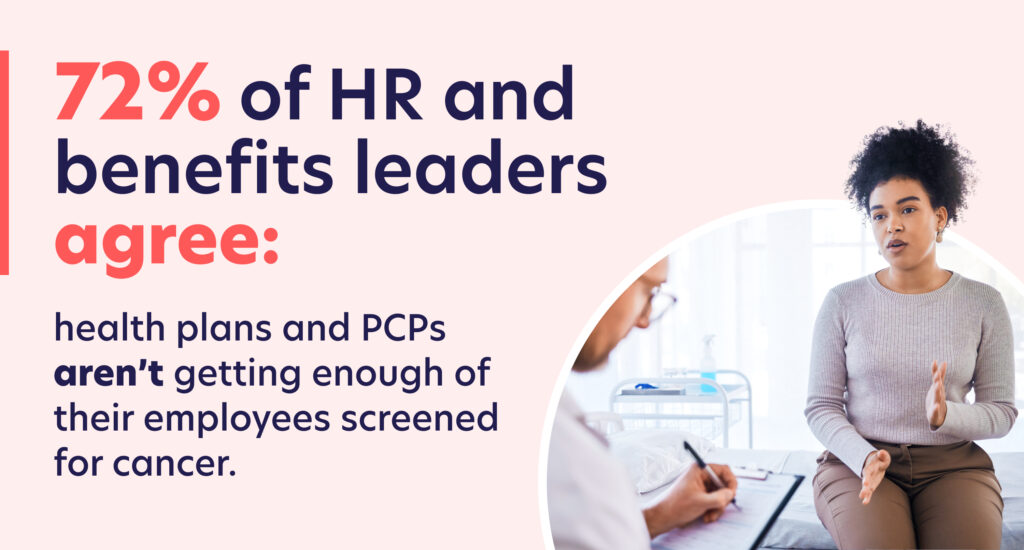 Diagnosing cancer just one stage earlier can save $60,000 per patient in treatment costs and triple their five-year survival rates. Nearly all of the surveyed benefits leaders (95 percent) agreed that earlier detection is one of the best ways to improve outcomes and reduce costs. Employers need cancer programs that offer personalized, expert-led support to help their employees catch cancer as early as possible. This includes offering individualized risk assessments and evidence-based screening guidelines for employees, removing barriers to screening with accessible and at-home options, and linking members to cancer experts to manage next steps.